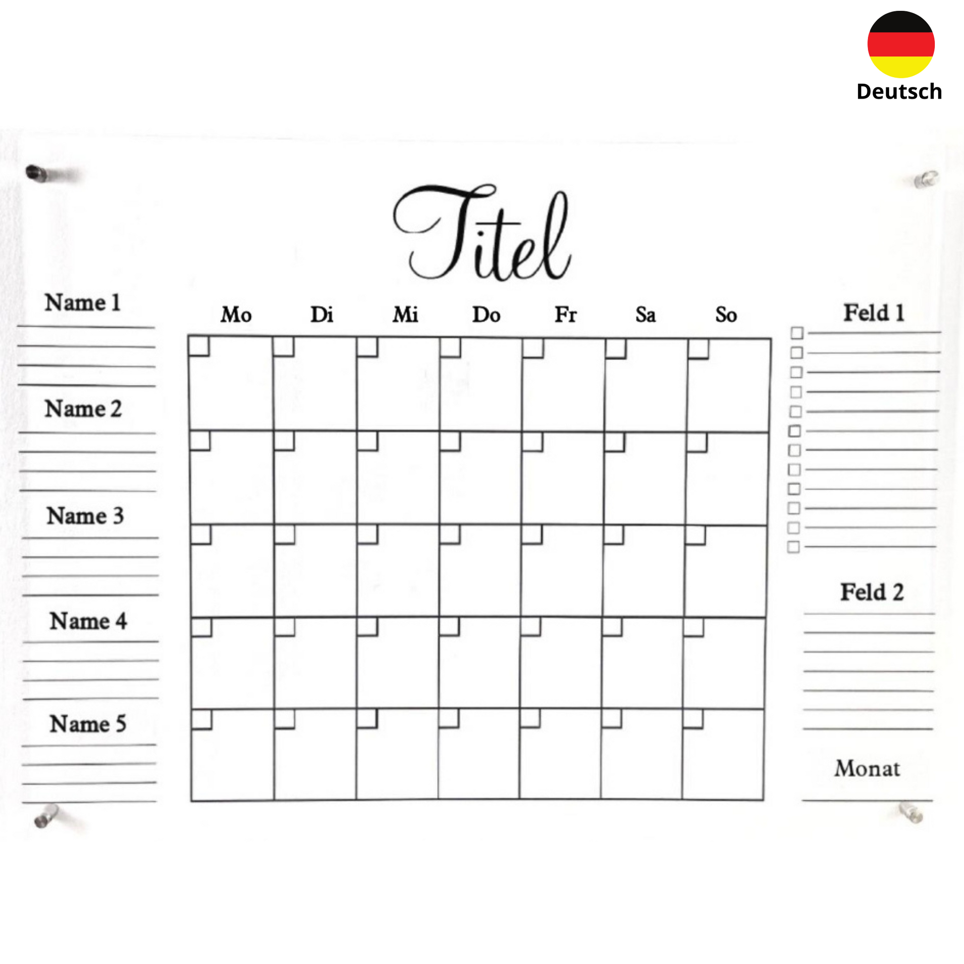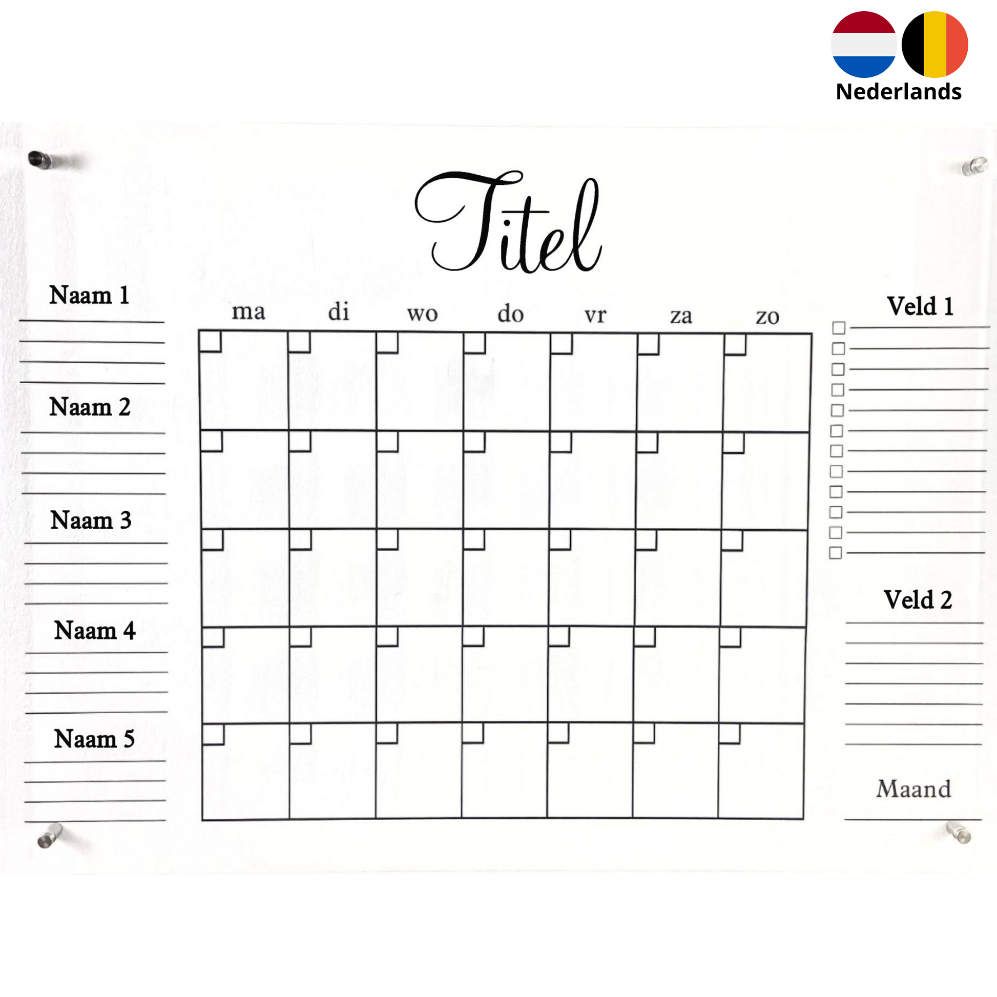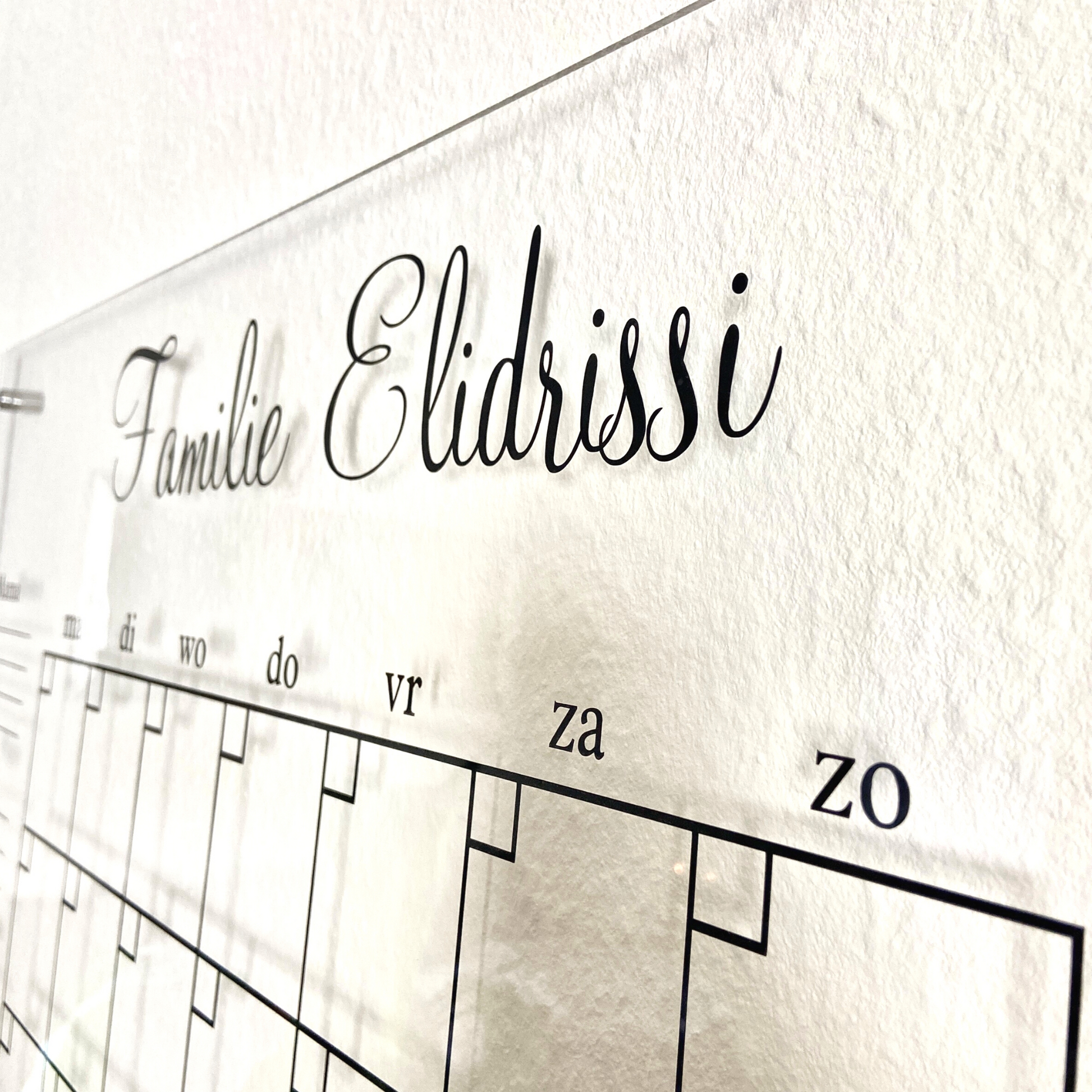 -Gepersonaliseerde acrylkalender 80 x 60cm met 4x voorgeboorde gaten.